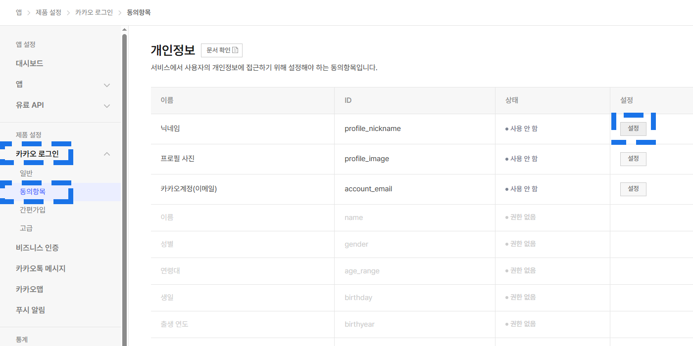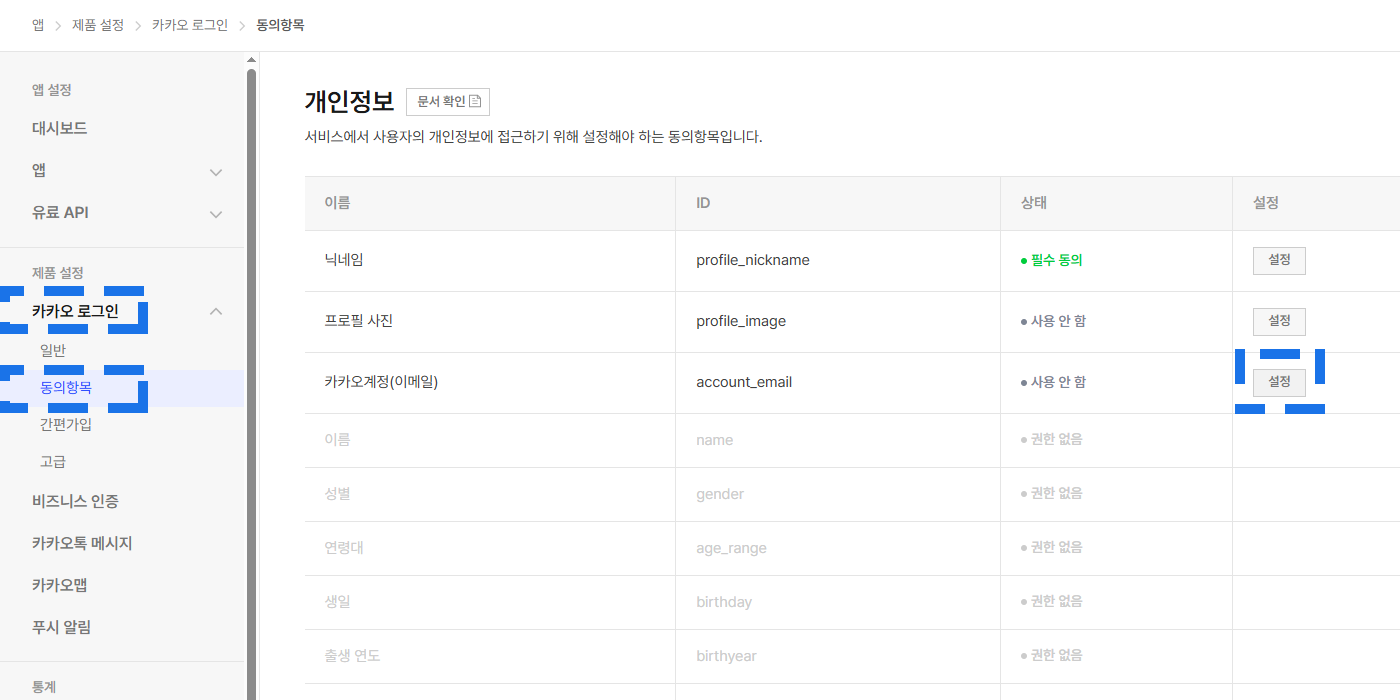소셜 로그인 설정
